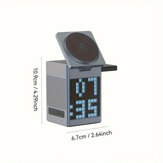 6-in-1 Wireless Speaker, Wireless Fast Charge, Suitable for Mobile Phone Watch Charging, DIY Screen Display, Compact & Portable Wireless Charging Station