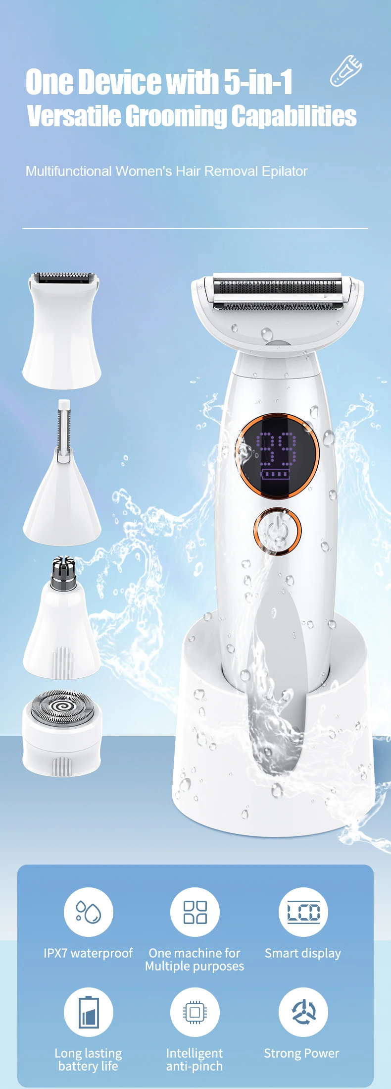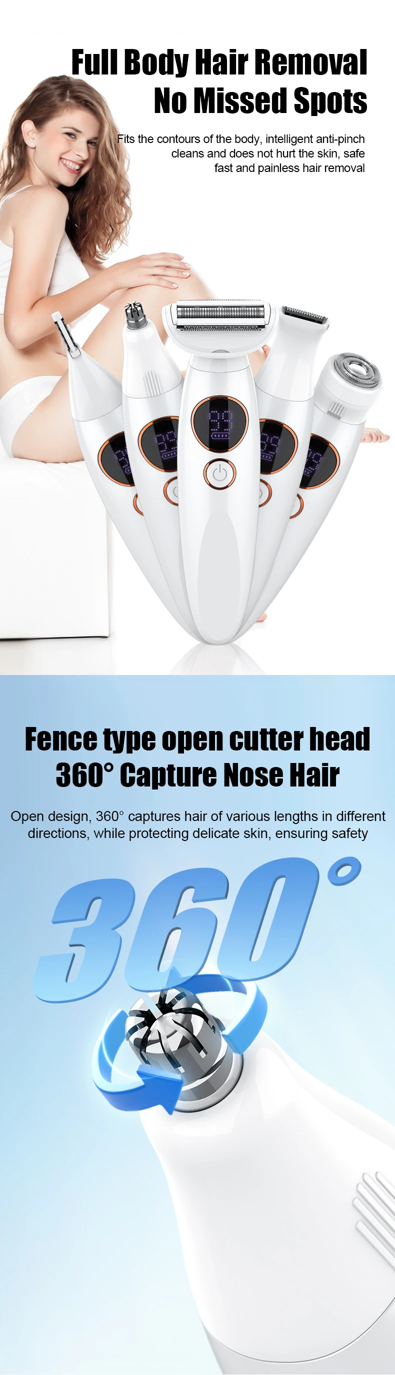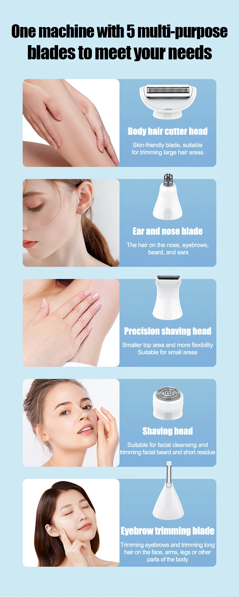 Rasoir 5 en 1 , lavable, pour épilation, épilateur, tondeuse pour le corps, kit de toilettage, tondeuse à cheveux 🇳🇪